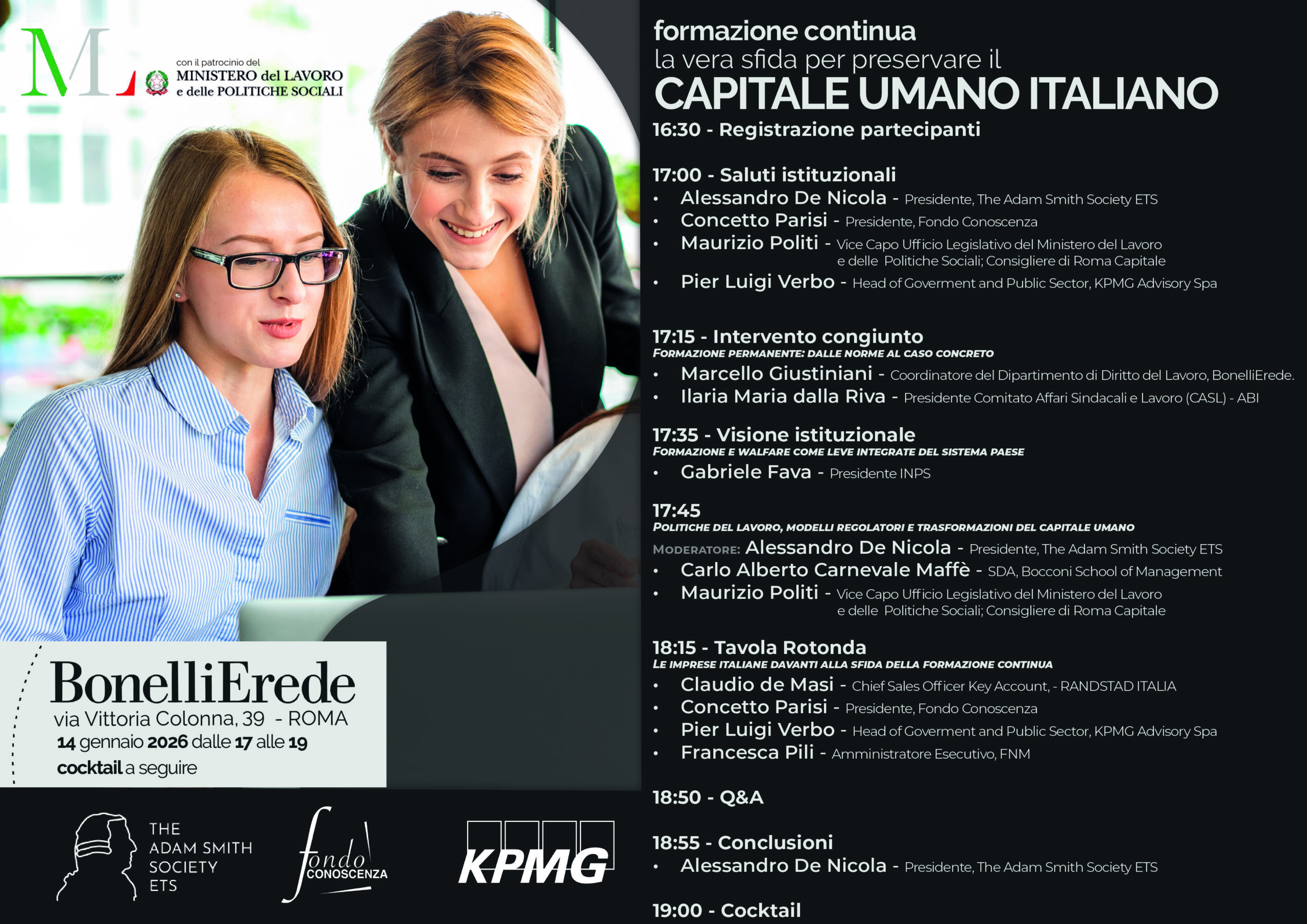 Ringraziamo ancora una volta KPMG, Fondo Conoscenza, Ministero del Lavoro, Studio BonelliErede per ospitalità, i relatori e tutti i partecipanti per aver contribuito a una giornata di confronto di alto livello.